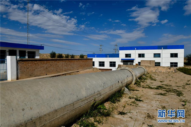 這是中寧縣喊叫水鄉(xiāng)賀家口子村的一個泵站,黃河水通過這個泵站引入賀家口子村(9月6日攝)。新華社記者 郭緒雷 攝