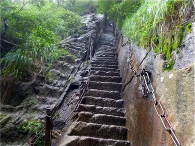 其實,攀爬千尺幢也是如此的感覺。心理上對于險要的感受,隨著腳步的向上移動而上升著,而當(dāng)你登上千尺幢平臺的時候,那種感覺也應(yīng)該像過“驚心”“平心”石一樣,先有懼怕和不安,再有平靜與快樂,那時的感覺只有興奮與自豪。那種心路的變化歷程其實就是一種心靈的升華和精神的歷練過程,難道這不是一種特殊的享受嗎?這會讓人銘記在心,終生難忘。