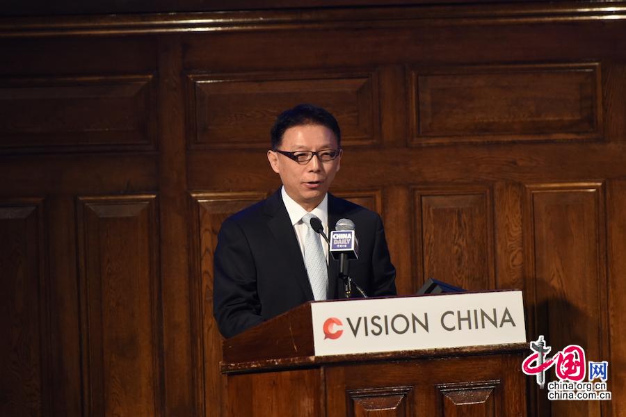 9月13日,中國日報(bào)社以“改革開放再出發(fā):中國與世界新愿景”為主題在英國倫敦喬治街1號(hào)舉辦第五期“新時(shí)代大講堂”。中國日報(bào)社總編輯周樹春致辭。(攝影 王志永)