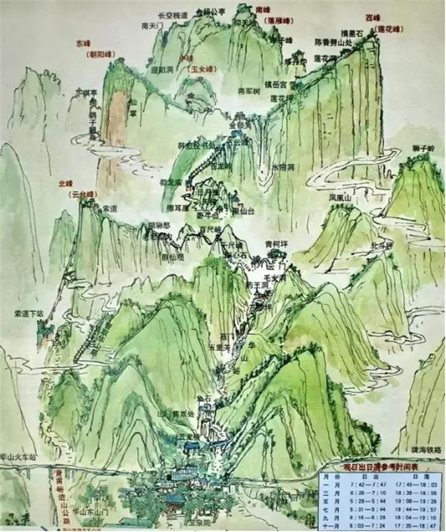 “自古華山一條路”就是當?shù)厝怂f的“華山峪”登山道,包括了自古以來華山唯一登山道上的沿途各景點,連起來就是通常所說的“自古華山一條路”。登華山最大的樂趣即為登山本身,一邊克服種種山路的艱險,一邊移步換景觀賞沿途風光,所以這條經(jīng)典的登山路線至今仍然是登華山的最佳選擇。