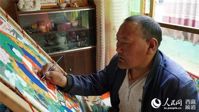 在薩迦縣城寶鋼中路上,民族手工業(yè)合作社店鋪里,45歲的邊巴正在小心擺弄著墻上的唐卡。邊巴說:“咱們薩迦民族手工業(yè)歷史悠久,比如薩迦唐卡和銀器都有千年歷史,泥塑面具也有900多年歷史,希望通過合作社形式讓手工業(yè)能規(guī)?;?jīng)營,解決一些貧困戶就業(yè)。”(記者鄧建勝 瓊達卓嘎 )