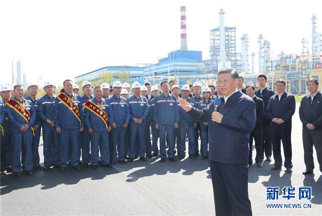 9月25日至28日,中共中央總書記、國家主席、中央軍委主席習(xí)近平在東北三省考察,主持召開深入推進(jìn)東北振興座談會。這是27日上午,習(xí)近平在遼寧中國石油遼陽石化公司同工人親切交流。 新華社記者 鞠鵬 攝