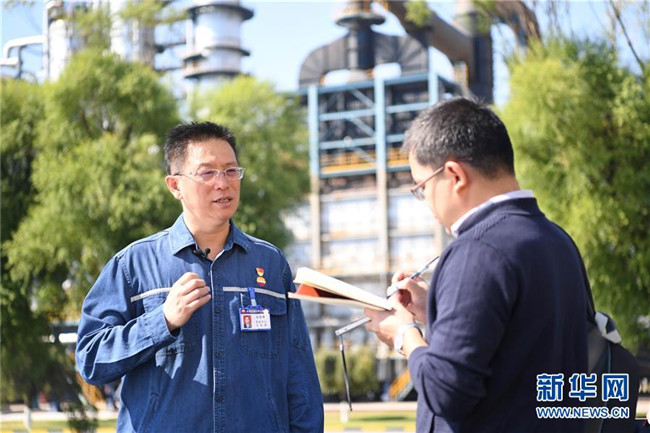 中國(guó)石油遼陽石化公司總經(jīng)理、黨委書記白雪峰向記者介紹情況(9月27日攝)。新華社發(fā)(龍雷攝)