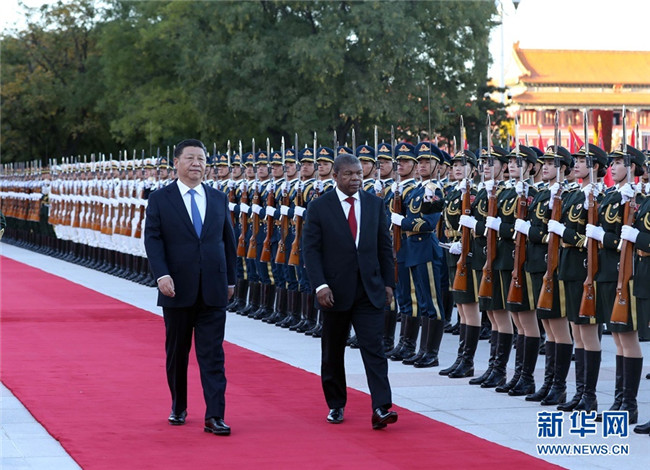 10月9日,國家主席習近平在北京人民大會堂同安哥拉總統(tǒng)洛倫索舉行會談。這是會談前,習近平在人民大會堂東門外廣場為洛倫索舉行歡迎儀式。 新華社記者姚大偉攝