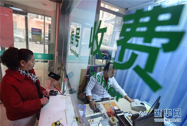 2017年4月8日,北京“醫(yī)藥分開”綜合改革正式在3600余家醫(yī)療機構(gòu)實施。這是市民在北京東花市社區(qū)衛(wèi)生服務中心掛號交錢。 新華社記者 羅曉光 攝
