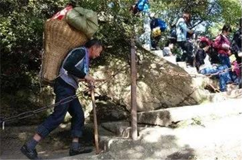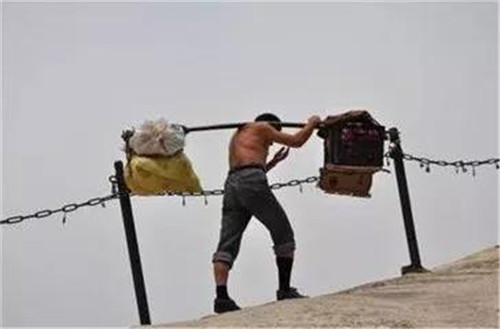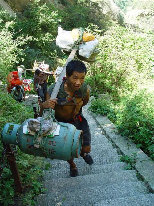 以前爬華山時,碰到的華山挑夫看上去大都三四十歲的樣子,也有年長的,這些人普遍是因為家庭困難,生活所迫,不得已用肩膀挑起了家里的生活重?fù)?dān)!