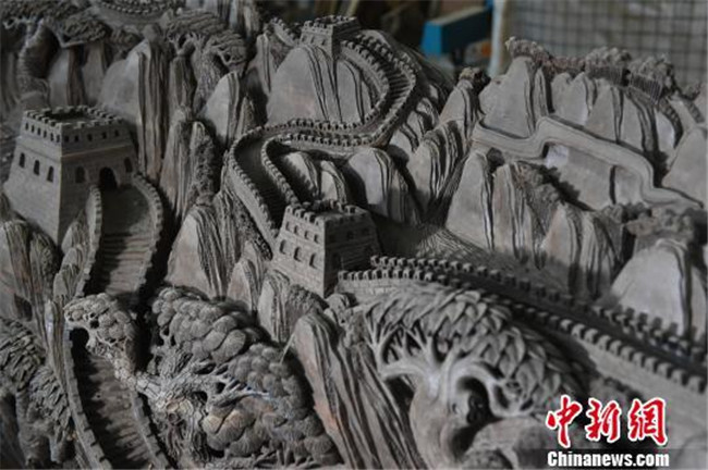 重慶市民耗時三個月在六米烏木上雕刻萬里長城