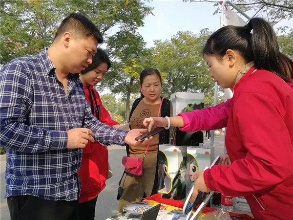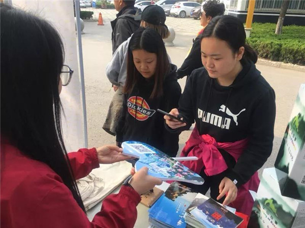 今天一大早孝心石周圍就圍滿了前來咨詢的登山游客。營銷中心的工作人員正在耐心地為游客講解,并指導(dǎo)游客參與活動。