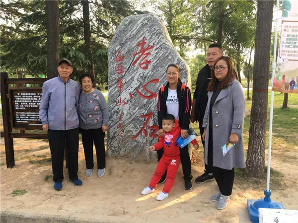 在節(jié)日的氛圍里,游客熱情高漲,爭先恐后地與“孝心石”合影留念,以此表達自己對父母的親切祝福。