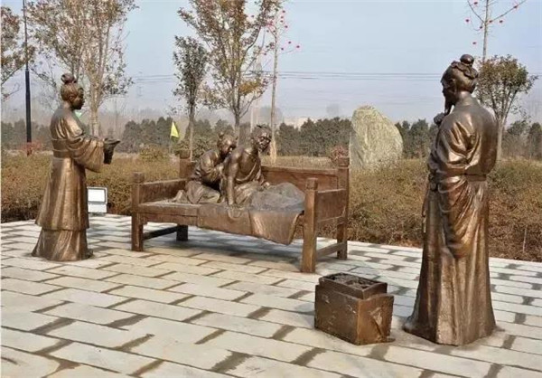 漢文帝劉恒,漢高祖第三子,為薄太后所生。高后八年(前180)即帝位。他以仁孝之名,聞于天下,侍奉母親從不懈怠。母親臥病三年,他常常目不交睫,衣不解帶;母親所服的湯藥,他親口嘗過后才放心讓母親服用。他在位24年,重德治,興禮儀,注意發(fā)展農(nóng)業(yè),使西漢社會穩(wěn)定,人丁興旺,經(jīng)濟得到恢復(fù)和發(fā)展,他與漢景帝的統(tǒng)治時期被譽為“文景之治”。