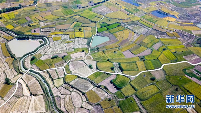 安徽鳳陽小崗村的田野景象(9月27日無人機拍攝)。 新華社記者 張端 攝