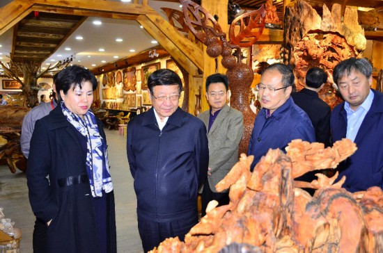 張建龍首先來(lái)到烏馬河木藝文化小鎮(zhèn),詳細(xì)了解小鎮(zhèn)規(guī)劃布局和建設(shè)發(fā)展情況,通過(guò)觀看小鎮(zhèn)宣傳片,現(xiàn)場(chǎng)參觀小鎮(zhèn)服務(wù)中心、木藝產(chǎn)品店,對(duì)伊春市木藝文化產(chǎn)業(yè)發(fā)展表示高度肯定。他指出要繼續(xù)突出原生態(tài)特色,加強(qiáng)創(chuàng)新創(chuàng)意設(shè)計(jì),滿足人民群眾對(duì)林業(yè)產(chǎn)品多樣化的需求。走進(jìn)美江木藝公司,就如同走進(jìn)了藝術(shù)的殿堂,制作精良的木拼畫、惟妙惟肖的根雕、造型別致的樹榴工藝產(chǎn)品,一件件精美的木制工藝品,令人目不暇接。張建龍仔細(xì)觀賞這些木制產(chǎn)品,向企業(yè)負(fù)責(zé)同志詳細(xì)了解產(chǎn)品創(chuàng)意設(shè)計(jì)和市場(chǎng)銷售等情況。勉勵(lì)企業(yè)要再接再厲,繼續(xù)做好產(chǎn)品研發(fā),全面提升工藝水平,創(chuàng)造出更多更好的生態(tài)特色產(chǎn)品,進(jìn)一步增強(qiáng)林業(yè)發(fā)展的活力與動(dòng)力。