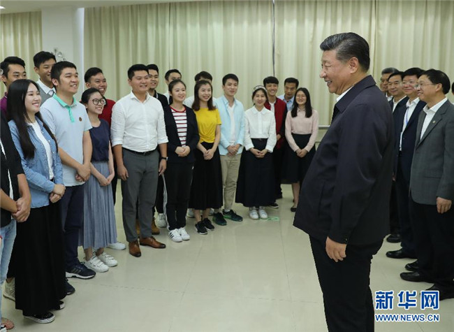 10月22日至25日,中共中央總書記、國家主席、中央軍委主席習近平在廣東考察。這是10月24日下午,習近平在廣州考察暨南大學時同部分港澳臺同胞和海外僑胞學生交流。 新華社記者鞠鵬攝