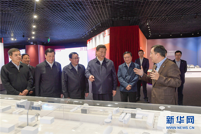 11月6日,中共中央總書記、國家主席、中央軍委主席習近平在上??疾臁_@是習近平在張江科學城展示廳考察。 新華社記者 李學仁 攝