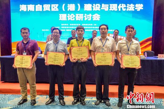 圖為海南省法學(xué)會向海南自貿(mào)區(qū)(港)法治建設(shè)優(yōu)秀論文撰寫者頒獎。 洪堅鵬 攝