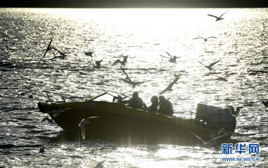11月14日,人們在昆明滇池上乘坐游船與紅嘴鷗嬉戲。 新華社記者 藺以光 攝