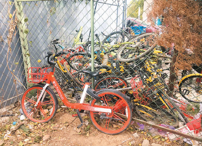圖為廢棄的共享單車(chē)。本報(bào)記者 彭訓(xùn)文攝 |