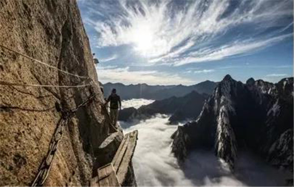 接下來你將會挑戰(zhàn)——華山五大險關(guān)。這五道險關(guān)分別是千尺幢、百尺峽、老君犁溝、擦耳崖和蒼龍嶺。
