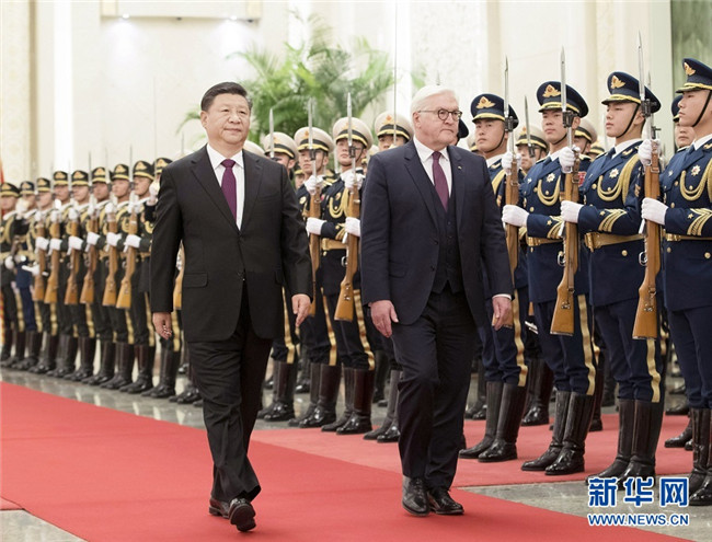 國家主席習(xí)近平10日在人民大會堂同德國總統(tǒng)施泰因邁爾舉行會談。兩國元首一致同意,加深互信,合作共贏,推動中德全方位戰(zhàn)略伙伴關(guān)系繼續(xù)深入發(fā)展,讓中德合作取得更多有利于兩國和兩國人民、有利于世界和平與繁榮的成果。