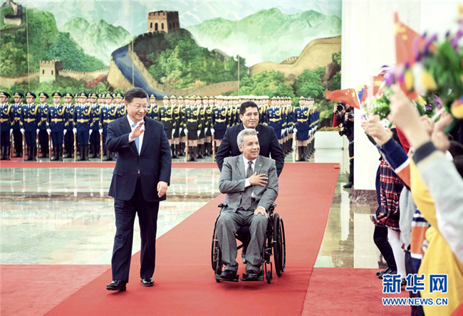 12月12日,國家主席習(xí)近平在北京人民大會堂同厄瓜多爾總統(tǒng)莫雷諾舉行會談。這是會談前,習(xí)近平在人民大會堂北大廳為莫雷諾舉行歡迎儀式。 新華社記者 李濤 攝