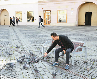 中國游客在羅馬尼亞錫比烏廣場(chǎng)休閑。新華社記者陳 進(jìn)攝 |