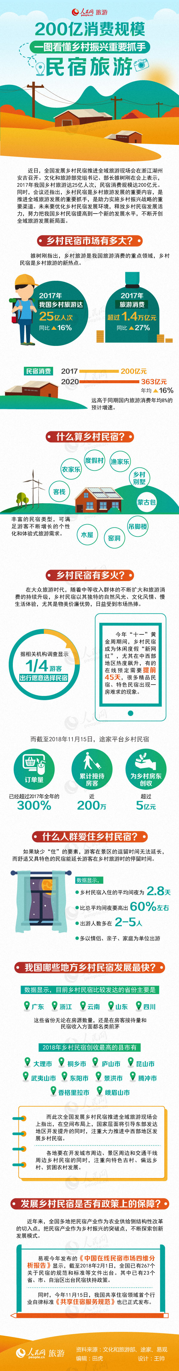 近日,全國(guó)發(fā)展鄉(xiāng)村民宿推進(jìn)全域旅游現(xiàn)場(chǎng)會(huì)在浙江湖州安吉召開。文化和旅游部黨組書記、部長(zhǎng)雒樹剛在會(huì)上表示,2017年我國(guó)鄉(xiāng)村旅游達(dá)25億人次,民宿消費(fèi)規(guī)模達(dá)200億元。同時(shí),會(huì)議還指出,鄉(xiāng)村民宿是鄉(xiāng)村旅游發(fā)展的重要內(nèi)容,是助力實(shí)施鄉(xiāng)村振興戰(zhàn)略的重要渠道,未來(lái)要優(yōu)化鄉(xiāng)村民宿發(fā)展環(huán)境,不斷開創(chuàng)全域旅游發(fā)展新局面。如此大的規(guī)模,鄉(xiāng)村民宿到底是什么?哪些地區(qū)鄉(xiāng)村民宿最火?什么人群愿為鄉(xiāng)村民宿買單?一張圖帶你讀懂鄉(xiāng)村民宿?。ㄌ锘ⅲ?/p>