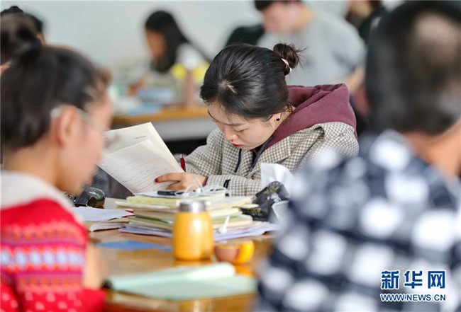 12月20日,在位于河北省秦皇島市的燕山大學(xué),備考考生在學(xué)校圖書館復(fù)習(xí)。 2019年全國(guó)碩士研究生招生考試將于12月22日至24日舉行,廣大考生積極備考,進(jìn)入最后的“沖刺模式”。據(jù)教育部數(shù)據(jù),今年報(bào)考人數(shù)達(dá)290萬。 新華社發(fā)(曹建雄 攝)