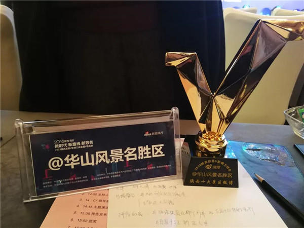 華山風(fēng)景名勝區(qū)官博在2018陜西政務(wù)V影響力峰會斬獲大獎