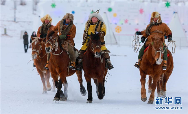 12月26日,馬隊(duì)在“伊薩仁”開幕式上表演。 當(dāng)日,內(nèi)蒙古呼倫貝爾市第五屆鄂倫春冰雪“伊薩仁”在鄂倫春自治旗開幕。“伊薩仁”是鄂倫春語(yǔ)“集會(huì)”“聚會(huì)”的意思。此次“伊薩仁”期間,將舉行鄂倫春徒步林海穿越、汽車越野拉力賽、冰雪觀賞、雪上沖浪等活動(dòng),為游客帶來(lái)不一樣的冰雪體驗(yàn)。 新華社發(fā)(丁根厚 攝)