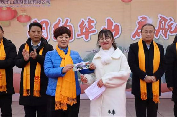 華山景區(qū)黨工委委員 、華山管委會副主任雷靖為幸運游客代表送上華山門票