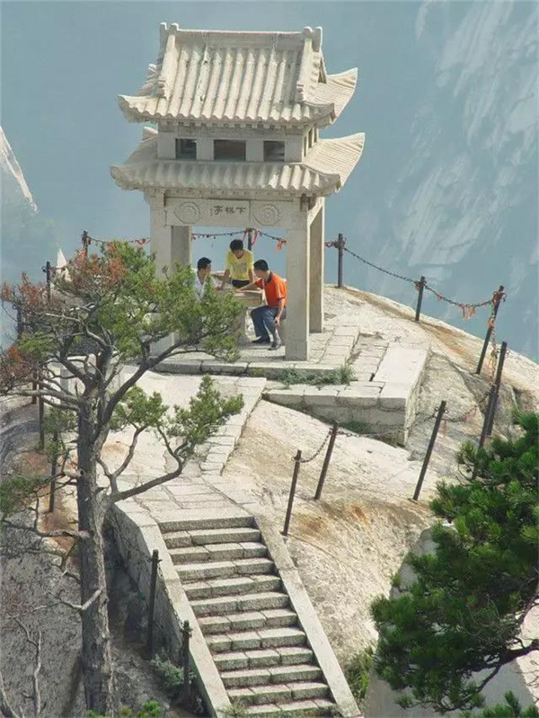 宋太祖趙匡胤與華山高道陳摶賭棋輸華山的故事更是膾炙人口。其次可知,棋文化在華山不但有悠久的歷史,而且包含著豐富的文化內(nèi)涵。與劍文化在華山形成氛圍相類,華山特殊的山水為棋文化創(chuàng)造了一種絕妙的意境。坐在峭嶺環(huán)繞的懸崖上,看身邊云涌霧繞,聽(tīng)耳畔松風(fēng)鳥(niǎo)鳴,手握著折扇,呷茗凝思,棋子落楸枰,意趣潤(rùn)心田,那是怎樣一種神思的飄逸與精神的陶冶。