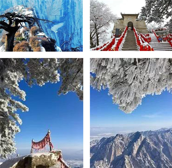 華山在11月進(jìn)入冬季,12月至次年3月全山飄雪,而2月前為最旺雪期。游客可欣賞到難得一見(jiàn)的華山雪景——美麗的霧凇給樹(shù)木、巖石、屋舍都披上一層晶瑩的薄衣,尤其在大雪覆蓋后,山景變成一幅曼妙的白色圖畫(huà),峰上的樹(shù)木和古藤被透明的冰層包裹,極富魅力。