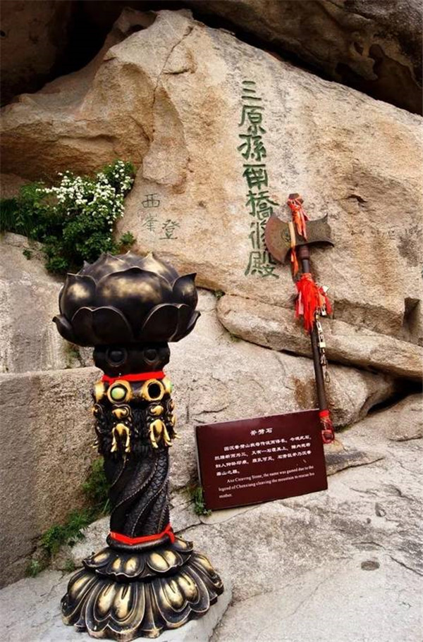 《寶蓮燈》故事的發(fā)生地,華山西峰之巔的斧劈石、開山神斧成為三圣母、劉彥昌堅貞愛情的歷史見證。在西峰情侶們可以深切的感受愛情的力量,親情的偉大。