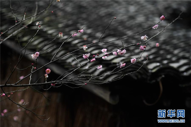 2月17日在杭州西溪濕地國家公園西溪梅墅旁拍攝的梅花。