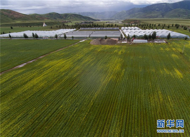 這是理塘縣濯桑鄉(xiāng)濯?,F(xiàn)代農(nóng)業(yè)雙創(chuàng)中心(2018年8月11日無人機(jī)拍攝)。理塘縣甲洼鎮(zhèn)、濯桑鄉(xiāng)等鄉(xiāng)鎮(zhèn)集中使用產(chǎn)業(yè)扶持資金,跨村集中抱團(tuán)發(fā)展設(shè)施蔬菜大棚,讓貧困人口在園區(qū)獲得穩(wěn)定收益。新華社記者 江宏景 攝