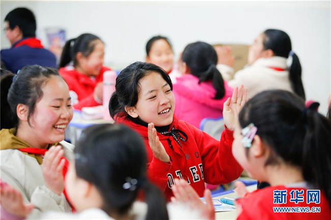 2月25日,在貴州省畢節(jié)市大方縣奢香古鎮(zhèn)恒大第十一小學(xué),孩子們在開學(xué)第一天的課間玩小游戲。 新華社發(fā)(羅大富 攝)