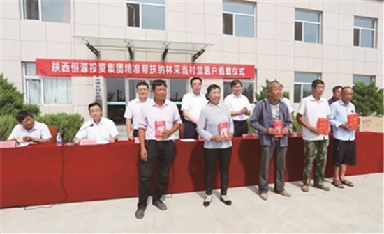 恒源集團(tuán)精準(zhǔn)幫扶納林采當(dāng)村貧困戶(hù)捐贈(zèng)儀式現(xiàn)場(chǎng)