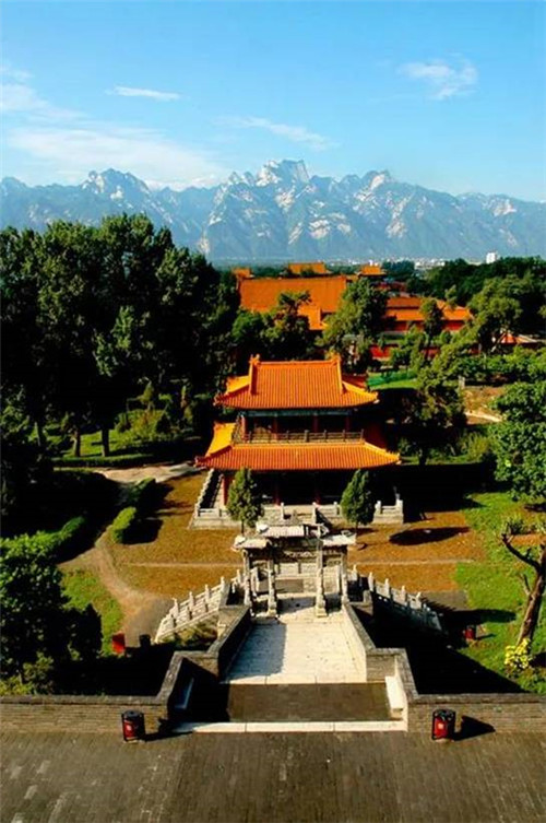 西岳廟是供奉西岳大帝華山神的廟宇,廟始建于漢武帝時(shí)代,后成為歷代帝王祭祀華山神的場(chǎng)所。西岳廟坐北朝南,廟門(mén)正對(duì)華山。在由北至南的中軸線(xiàn)上依次排列著灝靈門(mén)、五鳳樓、欞星門(mén)、金城門(mén)、灝靈殿、寢宮、御書(shū)樓、萬(wàn)壽閣。整個(gè)建筑呈現(xiàn)前低后高的格局。西岳廟建筑相當(dāng)宏偉。五鳳樓建于高臺(tái)上,高達(dá)20多米,登樓望華山,五峰歷歷在目。正殿灝靈殿建筑為琉璃瓦單檐歇山頂,坐落于寬廣的“凸”字型月臺(tái)之上,面寬7間,進(jìn)深5間,周?chē)谢乩?,氣?shì)宏偉,歷代帝王祭祀華山多住于此。殿內(nèi)懸掛有康熙、道光、慈禧所題“金天昭端”、“仙云”等匾額。整個(gè)院落林木繁茂,山石嶙峋,饒有園林之趣。