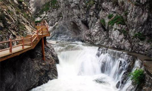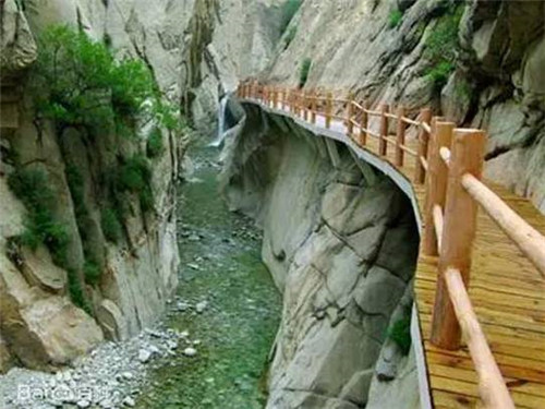 第二游:仙峪(仙峪,又名車(chē)箱谷,在華山峪西,與華山峪僅一嶺之隔,傳說(shuō)古時(shí)黃初平、黃初起弟兄在此牧羊成仙,因而得名。仙峪深五十余里,峪道窄狹清幽,山路崎嶇蜿蜒,河流湍急,山石險(xiǎn)峻,多處路段鑿崖,加棧凌空通過(guò)。進(jìn)峪五里處,有斜嶺橫阻,令人有谷盡路絕之感,然越嶺橫度,又平添柳暗花明的情趣)。
