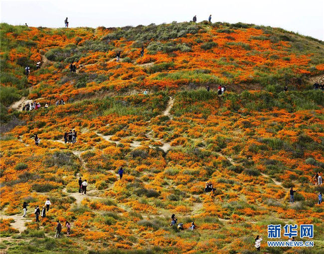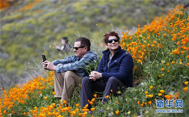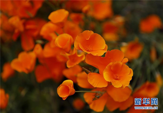 近日,美國加利福尼亞州埃爾西諾湖地區(qū)的山花競相綻放,成片的花海顯得格外壯觀。 新華社記者李穎攝
