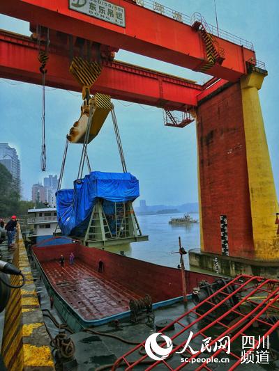 “從德陽發(fā)到樂山的大件(貨物),都是經(jīng)過這個碼頭,從陸運(yùn)轉(zhuǎn)江運(yùn)再到海運(yùn)。我們這里是大件(貨物)陸路轉(zhuǎn)水路的一個重要環(huán)節(jié)。”據(jù)樂山市東樂大件吊運(yùn)有限公司副總經(jīng)理陳忍介紹,川內(nèi)的大件貨物經(jīng)樂山大件碼頭中轉(zhuǎn),可通過水路通往岷江、長江沿岸直至上海,實(shí)現(xiàn)江海聯(lián)運(yùn)。