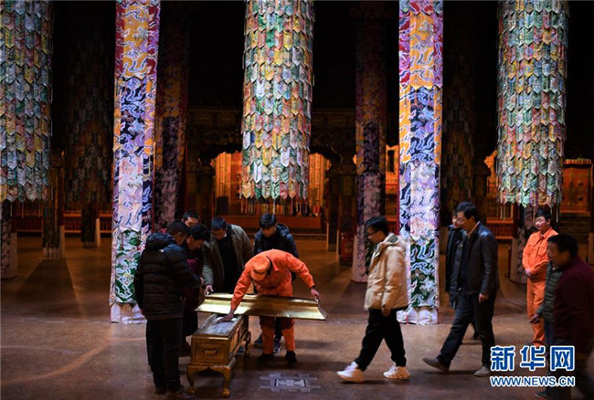 布達(dá)拉宮管理處的工作人員對(duì)佛像進(jìn)行數(shù)字化存檔(2018年11月16日攝)。 新華社記者 普布扎西 攝