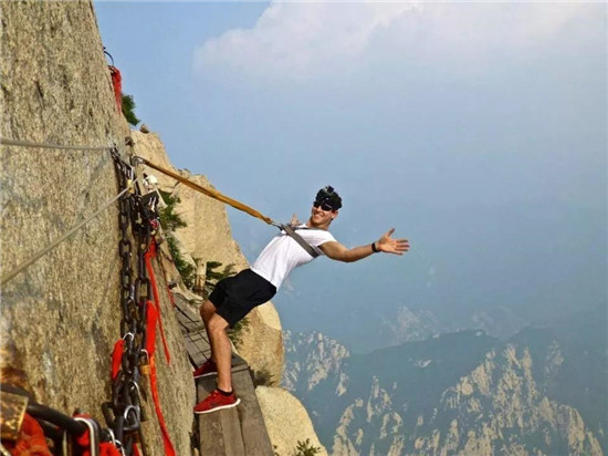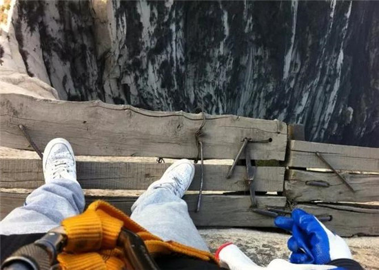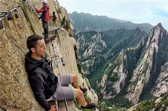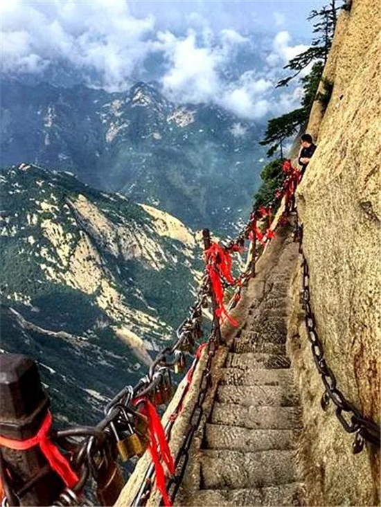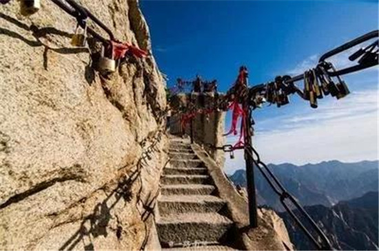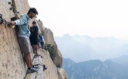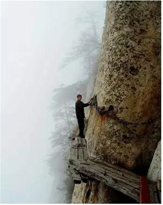 譯:華山上陡峭的長空棧道于700年前建成,這是那時的隱士為了找住在深山里神仙而建。