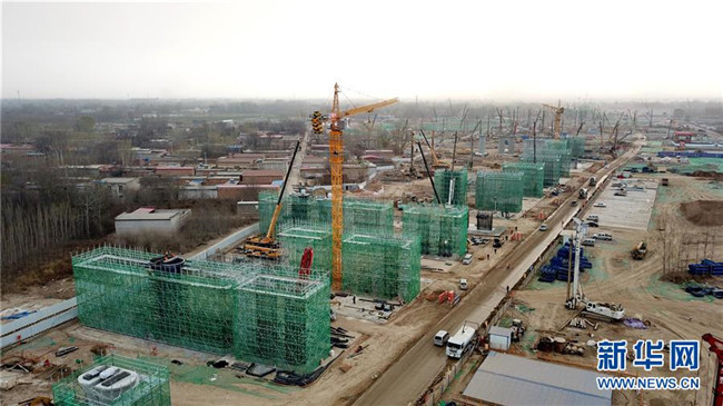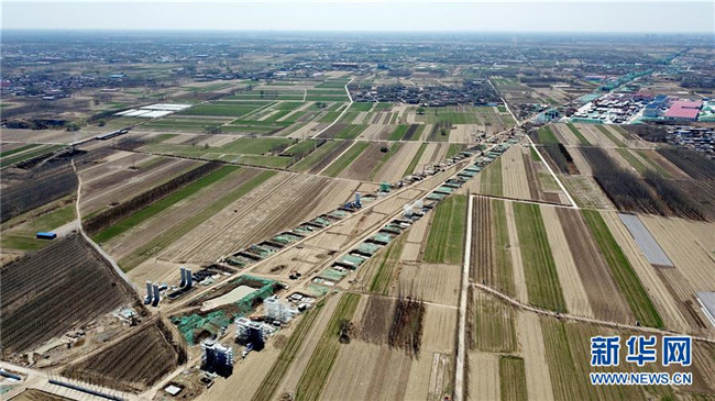 這是京雄城際鐵路施工現(xiàn)場(chǎng)(3月21日無(wú)人機(jī)拍攝)。新華社記者 牟宇 攝
