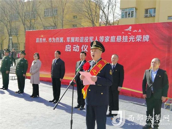 3月28日上午 ,昌吉州、市為烈屬、軍屬和退役軍人等家庭集中懸掛光榮牌啟動儀式在昌吉北京南路街道油運(yùn)基地社區(qū)小游園舉行。 昌吉州、市領(lǐng)導(dǎo)、退役軍人事務(wù)局干部、現(xiàn)役軍人代表、烈屬、軍屬、退役軍人代表、各社區(qū)書記、訪惠聚工作隊(duì)隊(duì)長、雙擁干事共計300余人參加啟動儀式。
