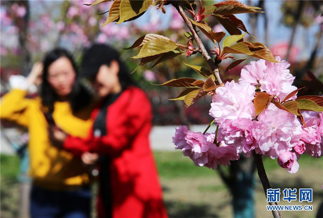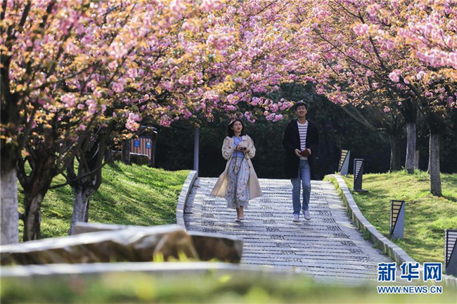3月31日,游人在江西九江濂溪區(qū)南山公園的櫻花園內賞花。 新華社發(fā)(張海巖 攝)