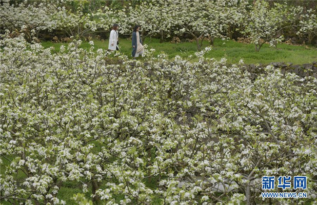 4月1日,游人在湖北宣恩縣椒園鎮(zhèn)黃坪村的一處梨園內游玩。新華社發(fā)(王俊 攝)