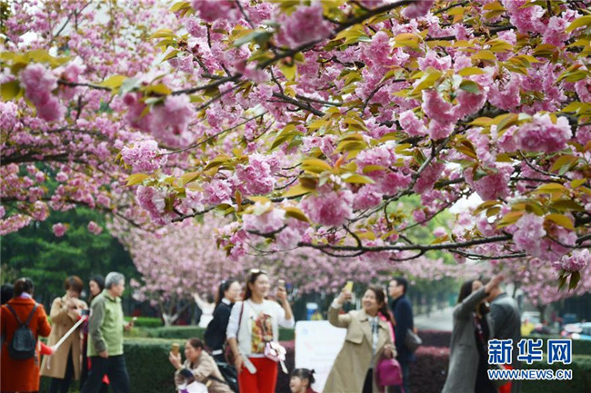 4月1日,市民在湖南省懷化學院賞花。新華社發(fā)(柴均林 攝)