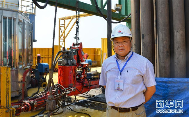 黃大年在松遼盆地大陸科學(xué)鉆探2號(hào)井現(xiàn)場(chǎng)(2014年8月8日攝)。新華社發(fā)