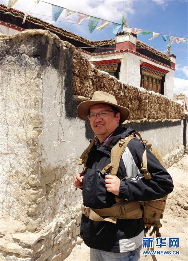 復(fù)旦大學(xué)教授鐘揚(yáng)在西藏日喀則進(jìn)行植物采樣期間留影(2013年8月4日攝)。新華社發(fā)(馮艾 攝)